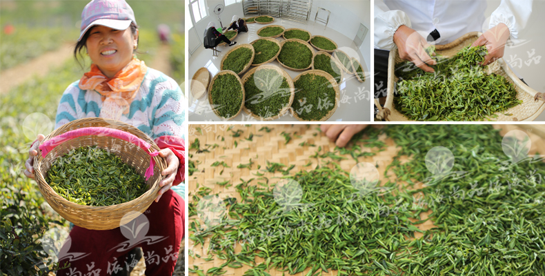 “依海尚品”茶園距海邊不到兩公里,地勢北高南低,呈35℃斜坡,光照充足、氣候濕潤、黃沙土壤,含有豐富的有機質(zhì)和微量元素,極其適合茶樹生長。茶園內(nèi)茶樹樹齡均處在3—5年興旺期(樹齡3—10年的茶葉),全部實施無公害栽培技術(shù),采用人工和物理防治病蟲害,禁用除草劑、催生素,追施以內(nèi)蒙羊糞、豆粕為主的優(yōu)質(zhì)有機肥料,所產(chǎn)綠茶獲國家綠色食品認證。