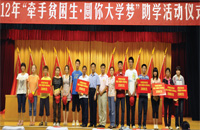 2012年9月5日,在東港區(qū)慈善總會2012年慈善助學(xué)金行動中再捐資12萬元,幫扶60名即將邁進(jìn)大學(xué)校門的貧困學(xué)子圓了大學(xué)夢。