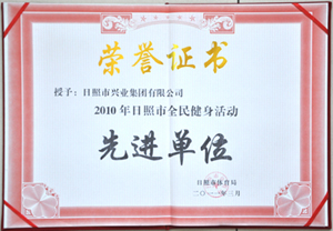 ·2011年3月,授予:日照興業(yè)集團2010年日照全民健身活動先進單位