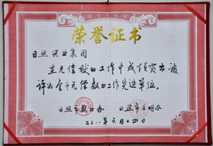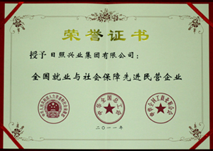 ·2011年1月,授予日照興業(yè)集團“全國就業(yè)與社會保障先進民營企業(yè)”