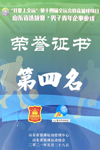 2021年5月,興業(yè)集團(tuán)籃球隊(duì)榮獲“第十四屆全運(yùn)會群眾籃項(xiàng)目山東省選拔賽男子青年企事業(yè)組”第四名