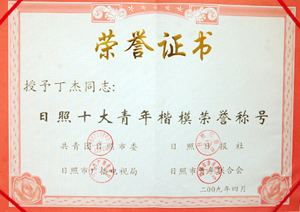 · 2001年5月4日,授予丁杰董事長“日照十大杰出青年”榮譽(yù)稱號