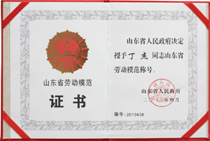 ·2013年4月,山東省人民政府授予丁杰董事長“山東省勞動(dòng)模范”稱號