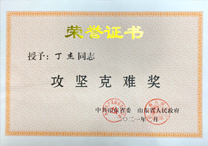 ·2021年2月,山東省政府授予丁杰董事長“攻堅(jiān)克難獎(jiǎng)”