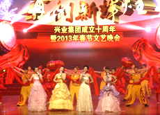 “再創(chuàng)新輝煌”興業(yè)集團2013年春節(jié)聯(lián)歡晚會歷時2個多小時,節(jié)目形式有歌舞、雜技、相聲、器樂、戲曲、情景朗誦等,內(nèi)容豐富,精彩紛呈;特別是央視著名主持人小尼和國家一級演員李玉剛等明星的加盟,讓整臺晚會無比璀璨;借助演播大廳極具現(xiàn)代化的舞美燈光效果驚艷四座,為我集團成立十周年畫上濃墨重彩的一筆,充分展示了我集團的企業(yè)實力,謳歌了興業(yè)人艱苦奮斗、團結(jié)協(xié)作、拼搏進取的創(chuàng)業(yè)精神和興業(yè)報國的高尚情懷,也為港城人民獻上了一場精彩、難忘、歡樂、美好的文化盛宴。 |