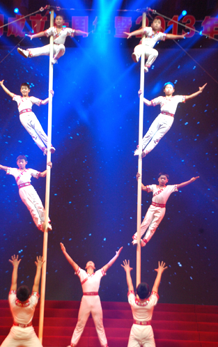 幾名特殊的嘉賓的到來,讓晚會增添了一份的感動,他們是興業(yè)希望小學的老師和同學代表以及我集團資助的大學生代表,一句“謝謝興業(yè)集團的叔叔阿姨們”,一個鞠躬,一曲《愛的世界》讓全場唏噓動容,他們用自己平實的語言表達了對興業(yè)的愛,用自己質(zhì)樸的歌聲表達對那些勇于承擔社會責任的企業(yè)和企業(yè)家們的感恩。十年里興業(yè)的發(fā)展可謂一步一個臺階節(jié)節(jié)高,雜技《節(jié)節(jié)高》驚險刺激,攀出了興業(yè)人的沖天豪氣,場下觀眾驚呼不已,拍手叫絕;著名歌手楊臣剛帶來耳熟能詳?shù)摹独鲜髳鄞竺住贰ⅰ逗眯值堋,將現(xiàn)場帶入溫馨的大合唱。